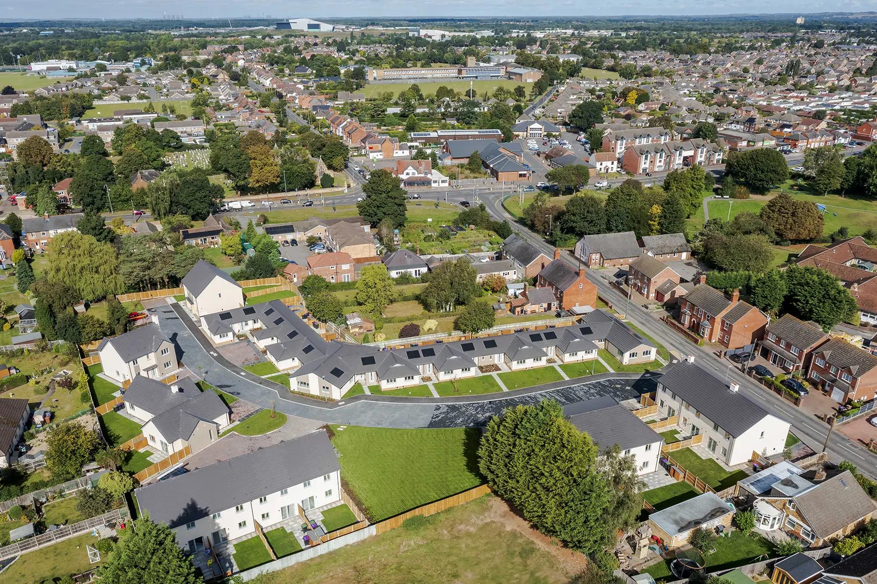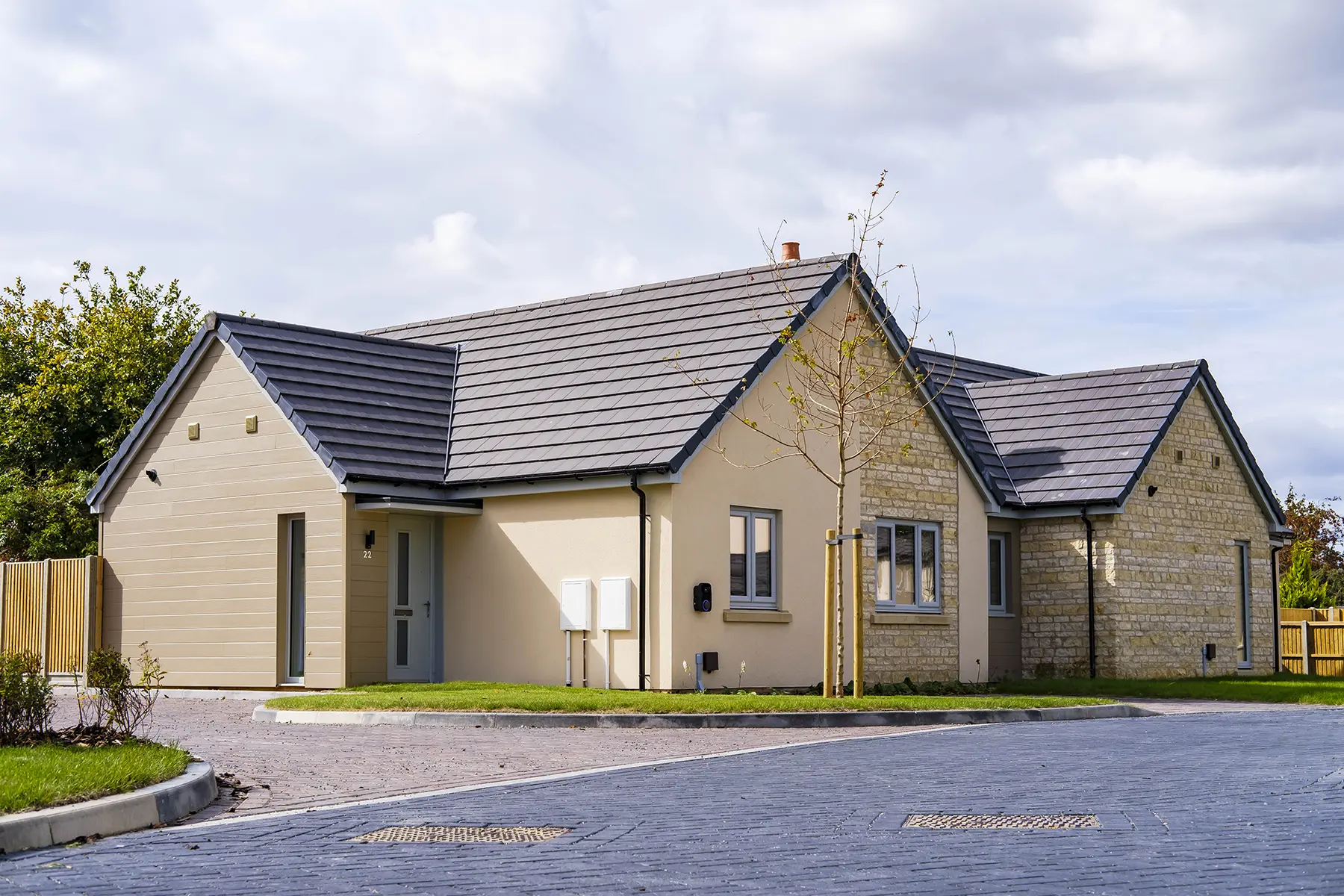 The Grinter Close regeneration scheme features 16 new high-quality homes, with a range of two-bedroom flats, two-bedroom bungalows, two and three-bedroom homes and a four-bedroom house. The new homes have all been designed and constructed efficiently, in line with the ‘fabric first’ approach adopted by NKDC.